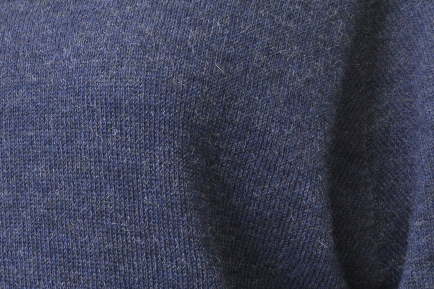 ベビーアルパカ本来の白い毛が織り交ざることで、単なる濃紺ではない奥行きのある上品な色味になっております