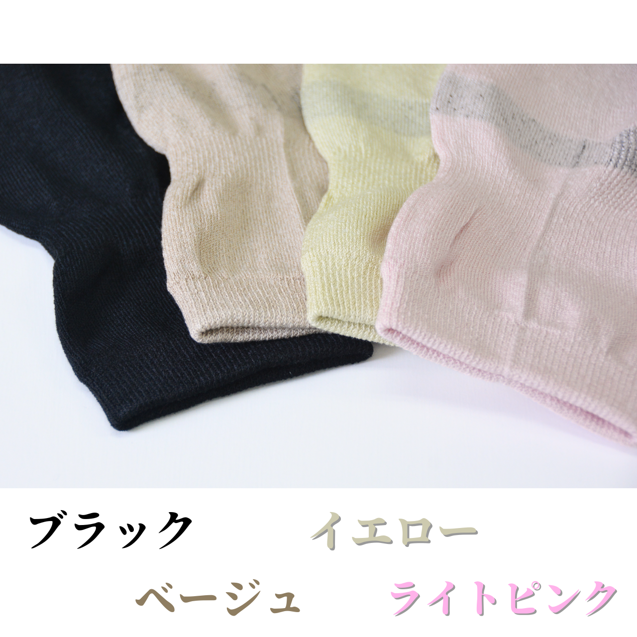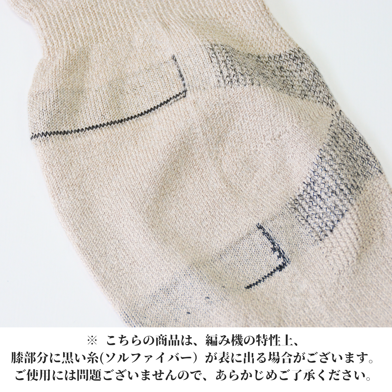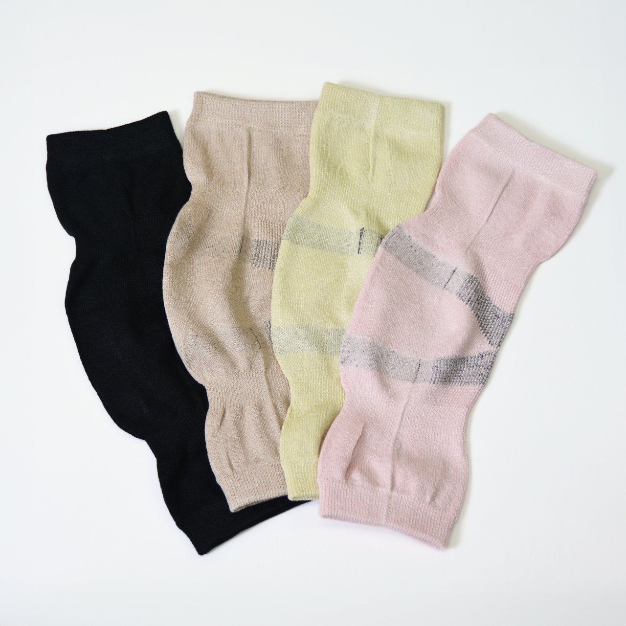 シルクの柔らかさを活かしつつ、ひざ裏部分は通気性の高いメッシュ編みにすることで、長時間着用でもムレを軽減