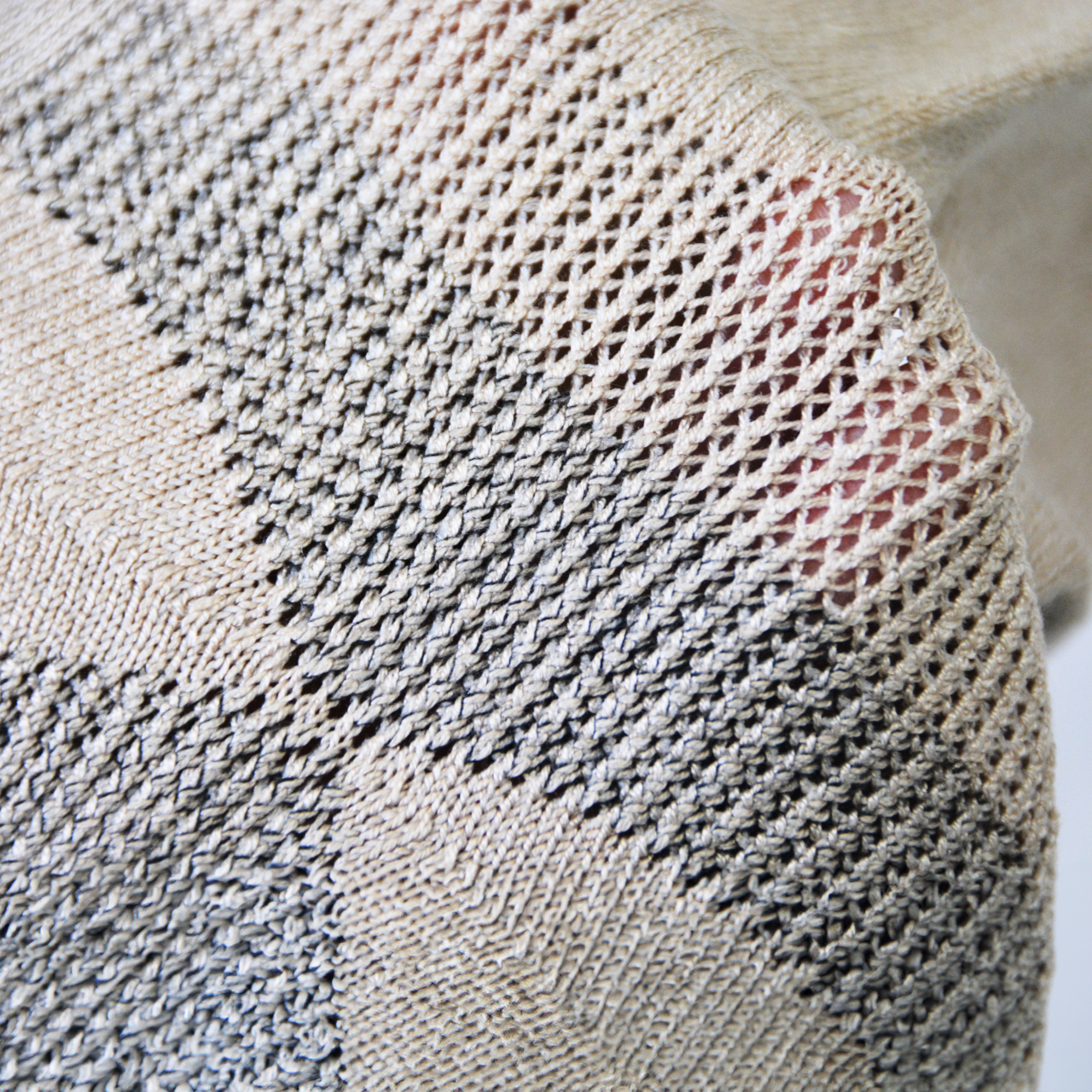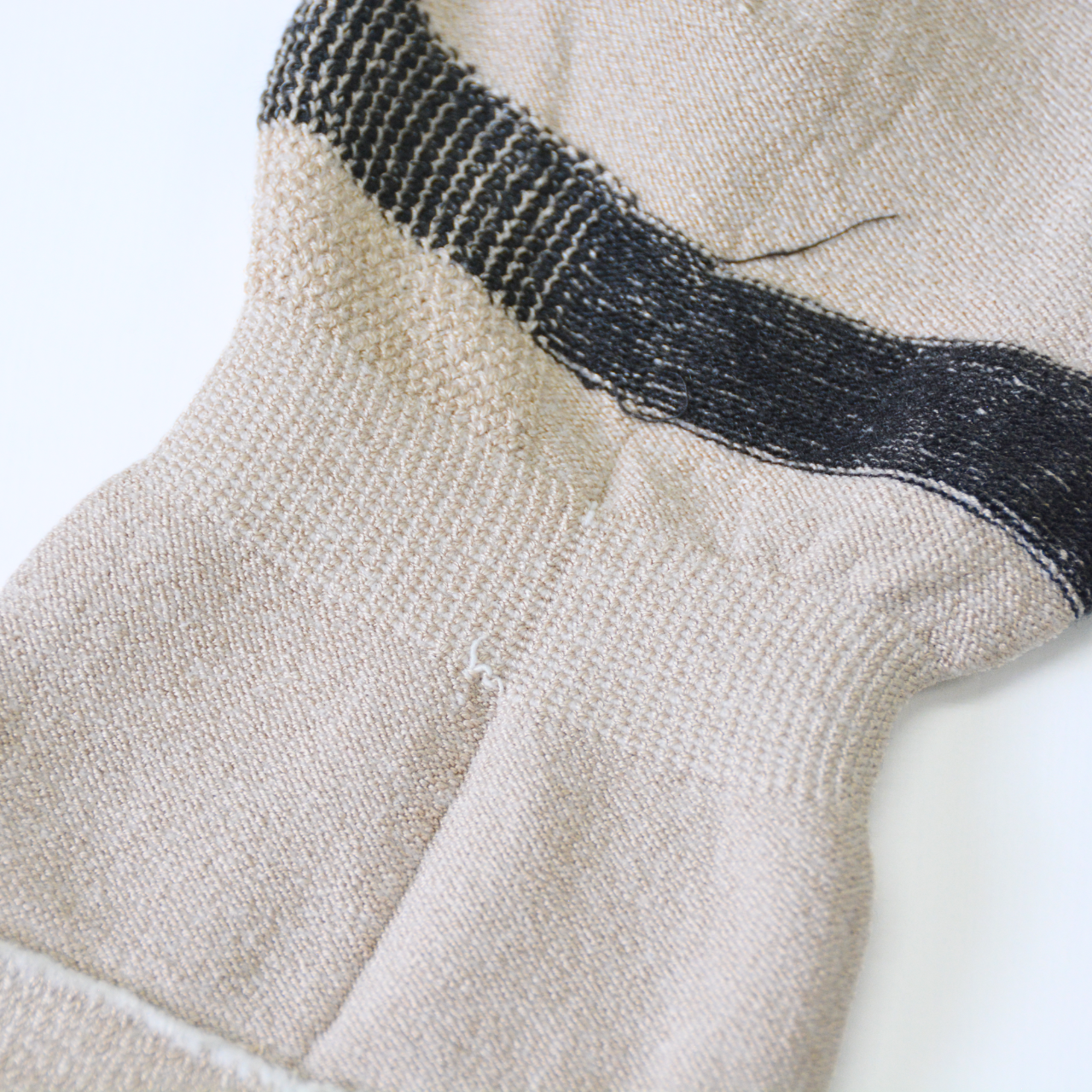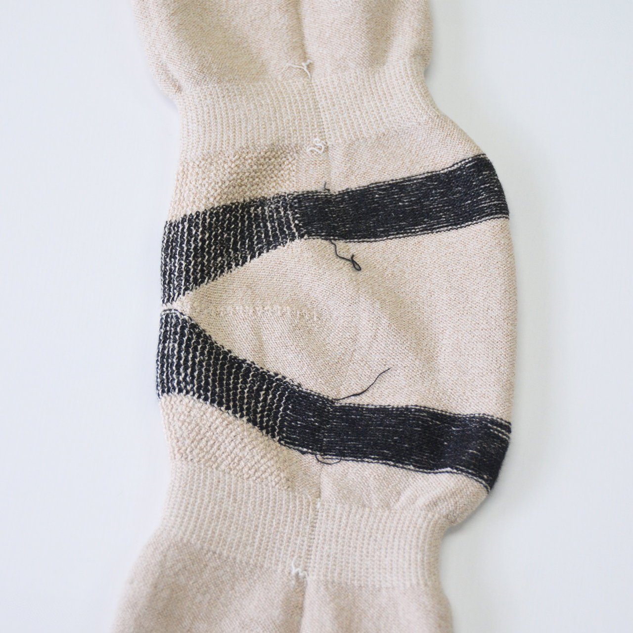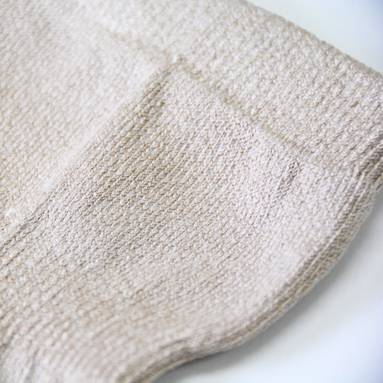 シルクの柔らかさを活かしつつ、ひざ裏部分は通気性の高いメッシュ編みにすることで、長時間着用でもムレを軽減