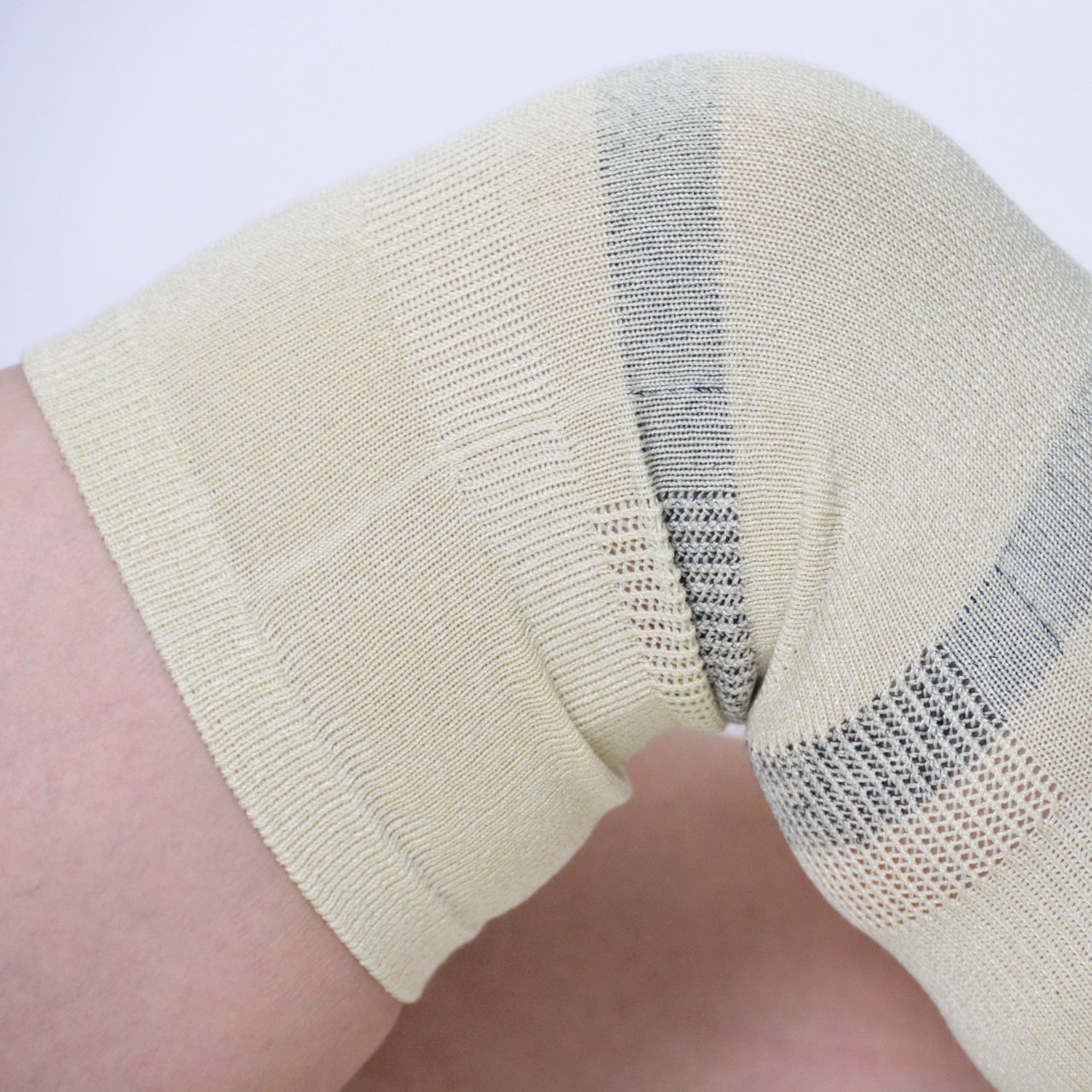肌触りの良いシルクx機能素材ソルファイバーで膝をしっかりサポート