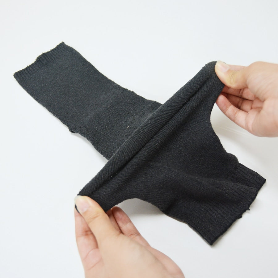 創業70年の撚糸屋で培った技術を活かし、シルクに伸びる糸を撚糸、独自の糸を使って編み立てたレッグウォーマーはぴったりしていても全く締め付け感のない付け心地を実現しています