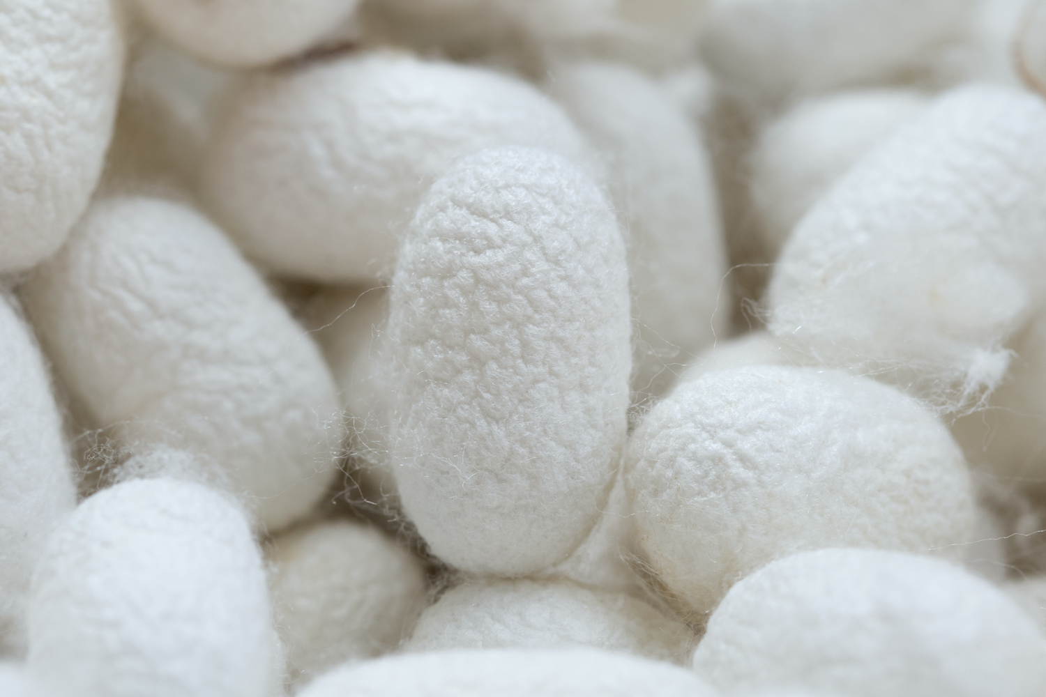 絹紡糸(けんぼうし)は、シルク特有のなめらかな肌触りと光沢感が特徴が魅力の上質な糸