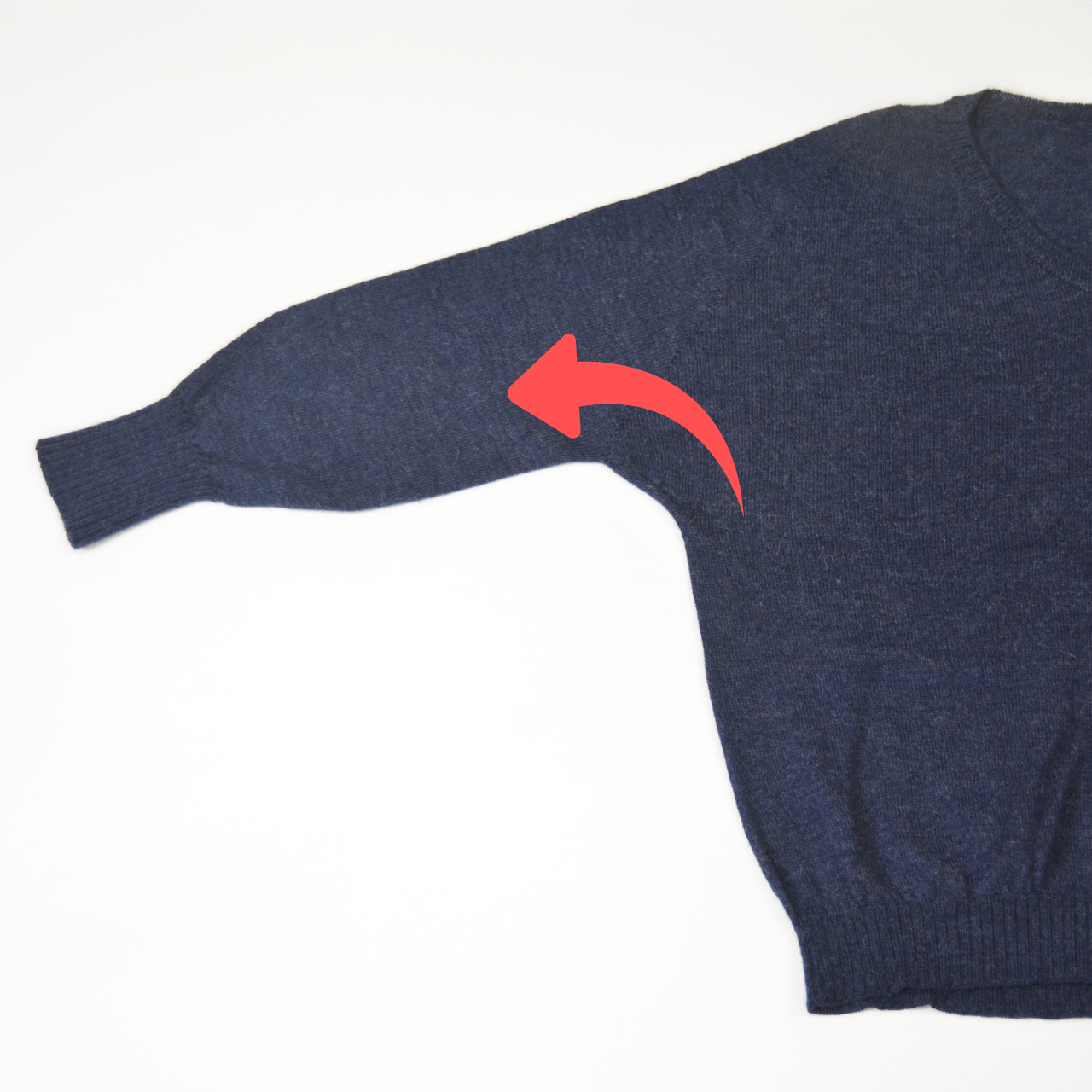 、袖はドルマンスリーブを採用し体のラインを拾いにくい上品なシルエットです。
