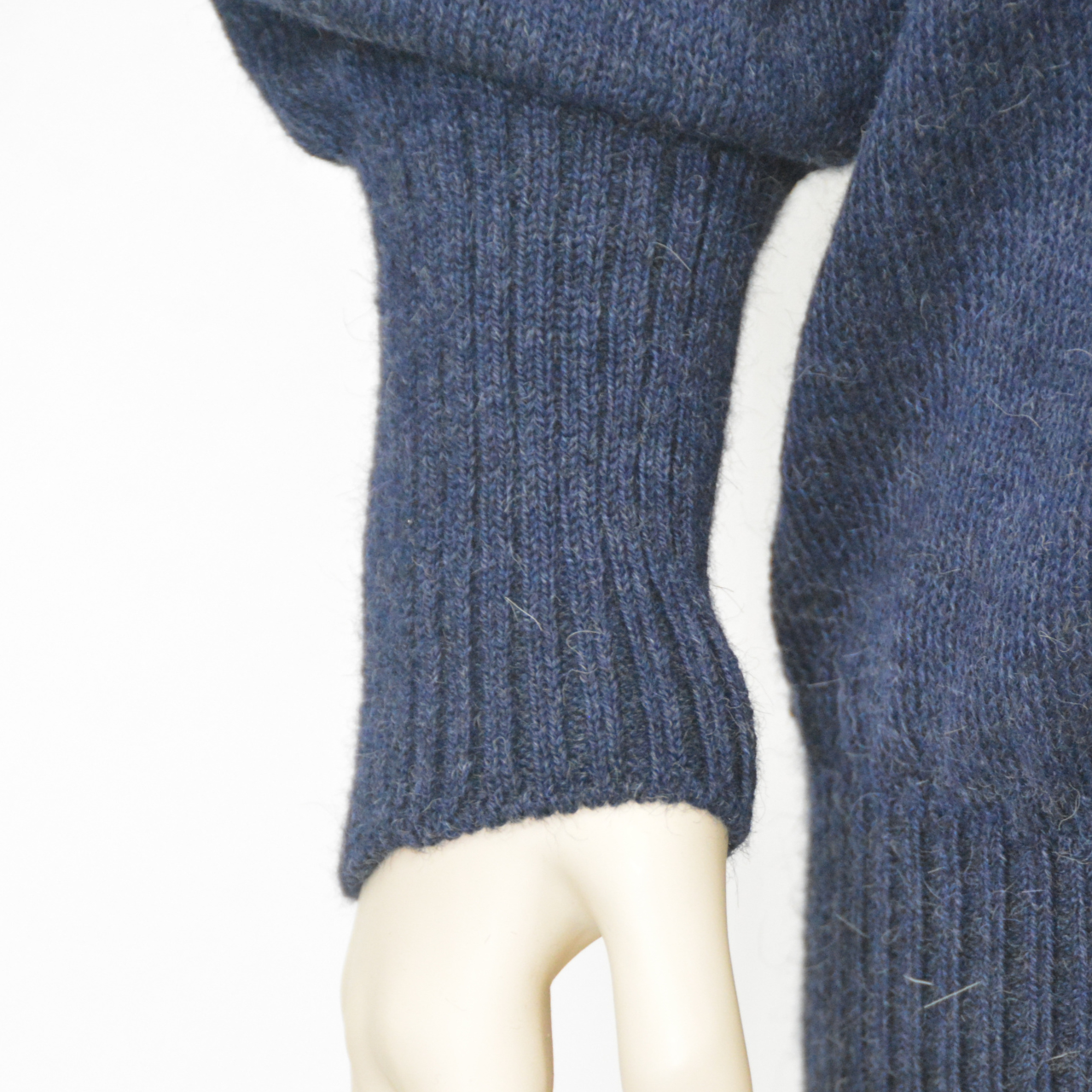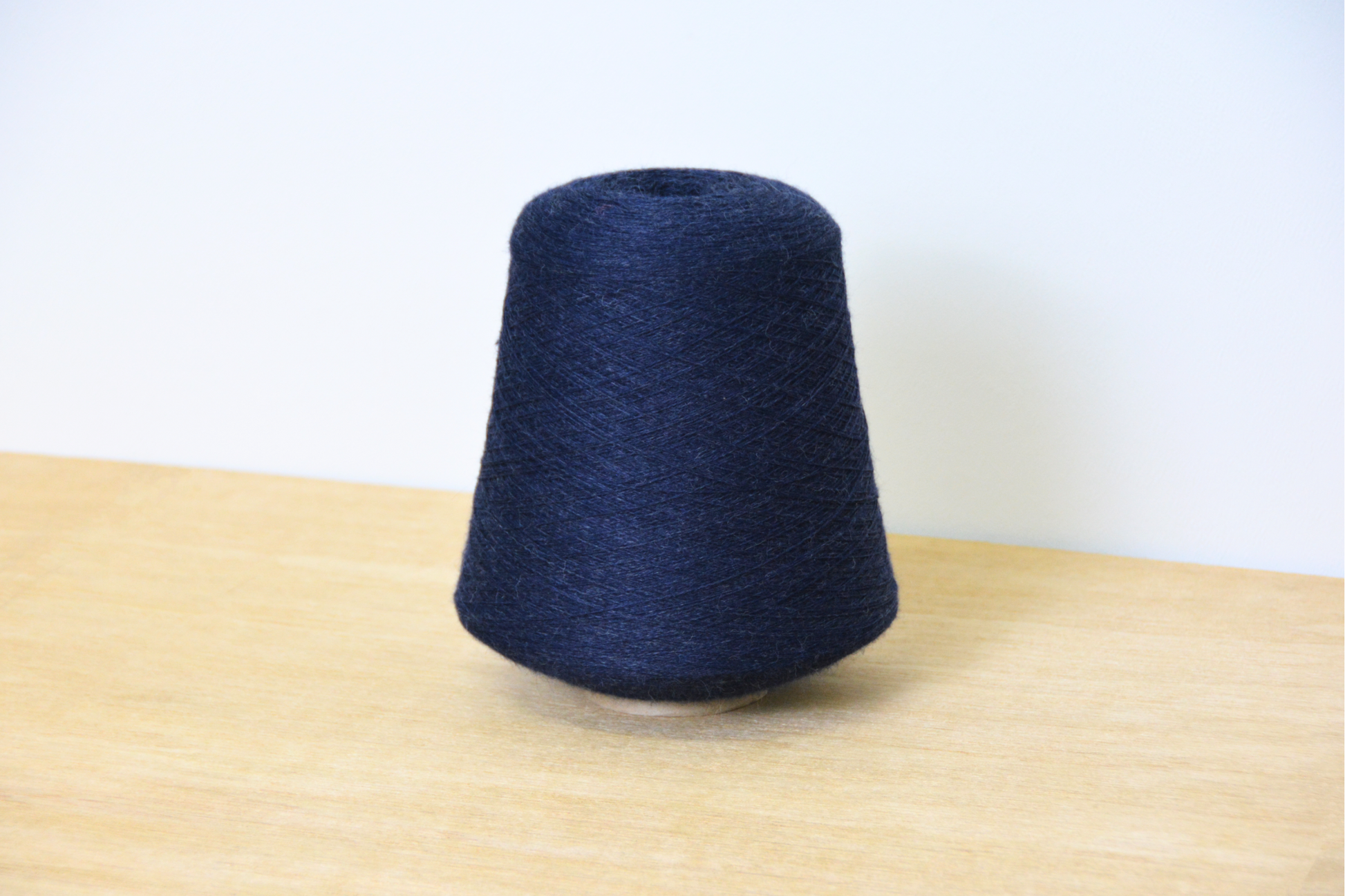 ベビーアルパカ本来の白い毛が織り交ざることで、単なる濃紺ではない奥行きのある上品な色味になっております
