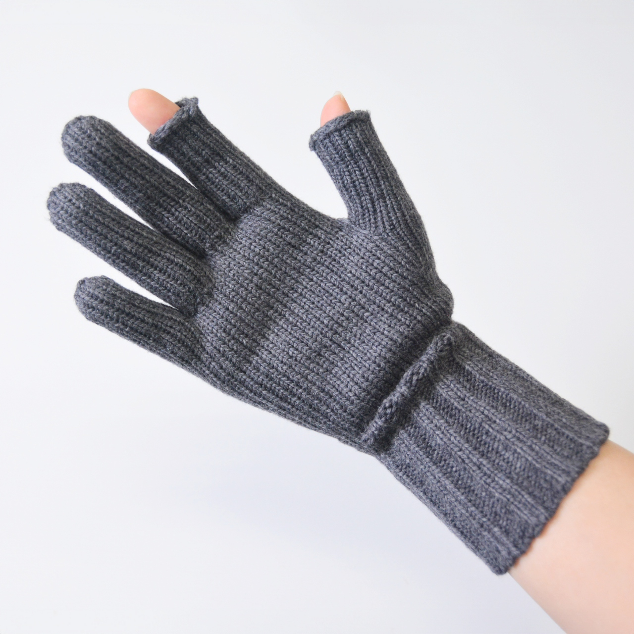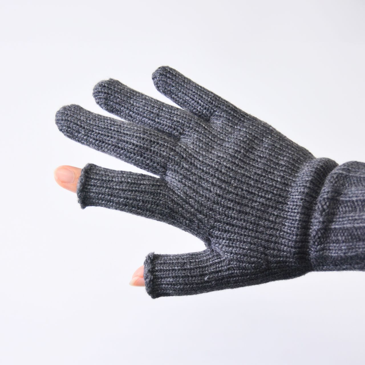 他の指はしっかり覆い、防寒と使いやすさを両立しました