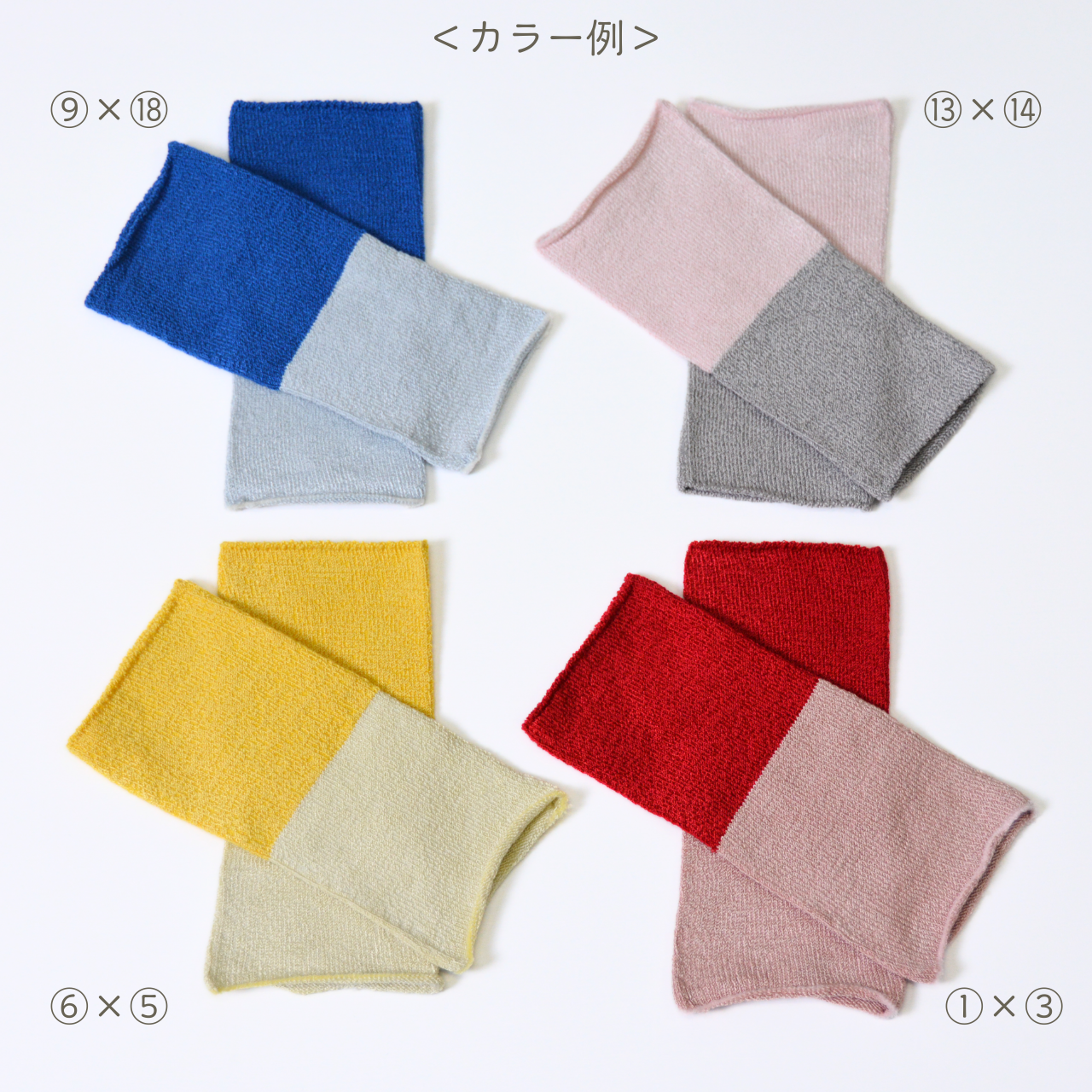 ▶あなただけの組み合わせで、特別な手首足首ウォーマーをお作りいたします