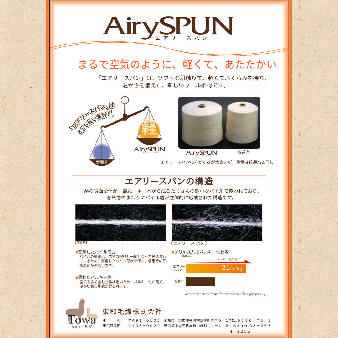 使用しているのは、東和毛織が開発したウール糸「エアリースパン」