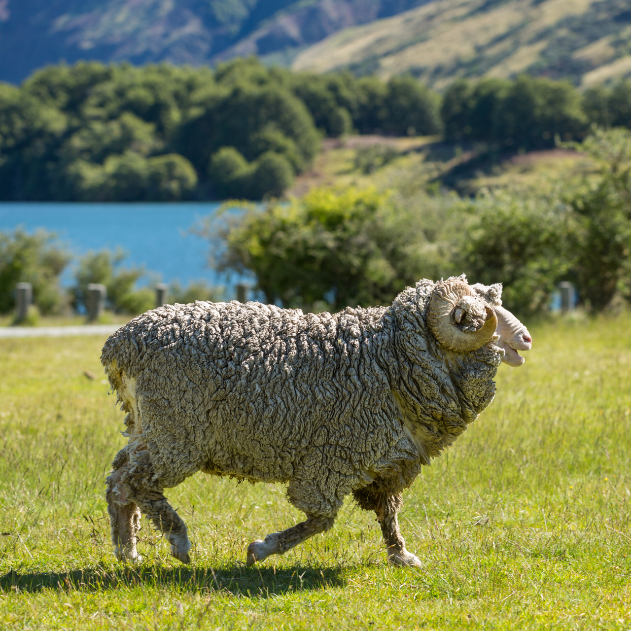 メリノ種の羊から採れる極めて繊維が細い高級羊毛で、チクチクせず肌触りが滑らかなのが最大の特徴です