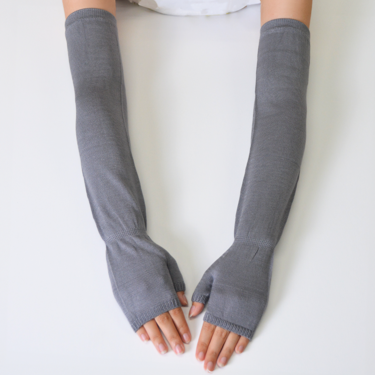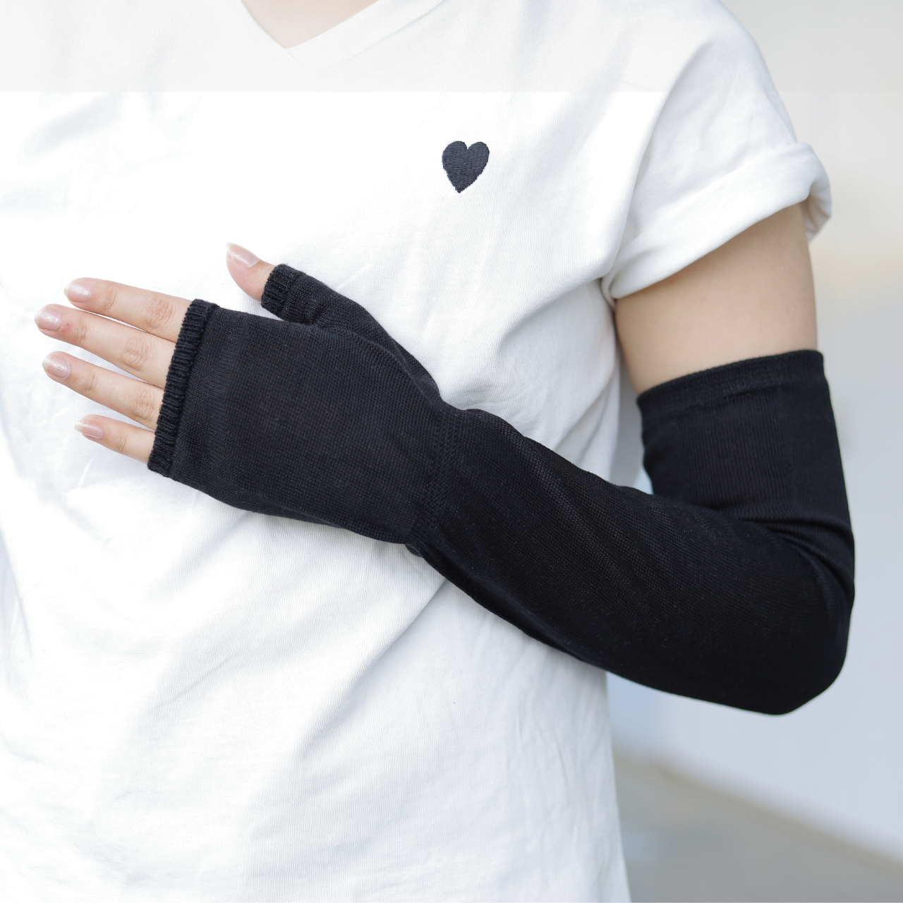ちまたにあふれているアームカバーの素材の多くはポリエステル、ナイロン、綿、シルク混紡がほとんど。オゼキサポーターが選んだのは上質シルク100%。