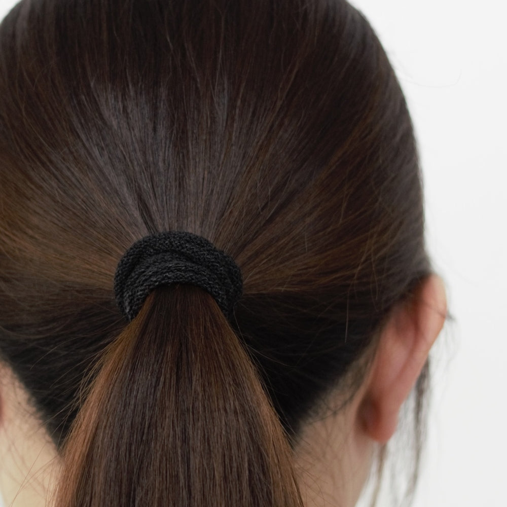SOLFIBER®(ソルファイバー)と上質なシルク(絹紡糸)を引き揃えヘアゴムを作りました