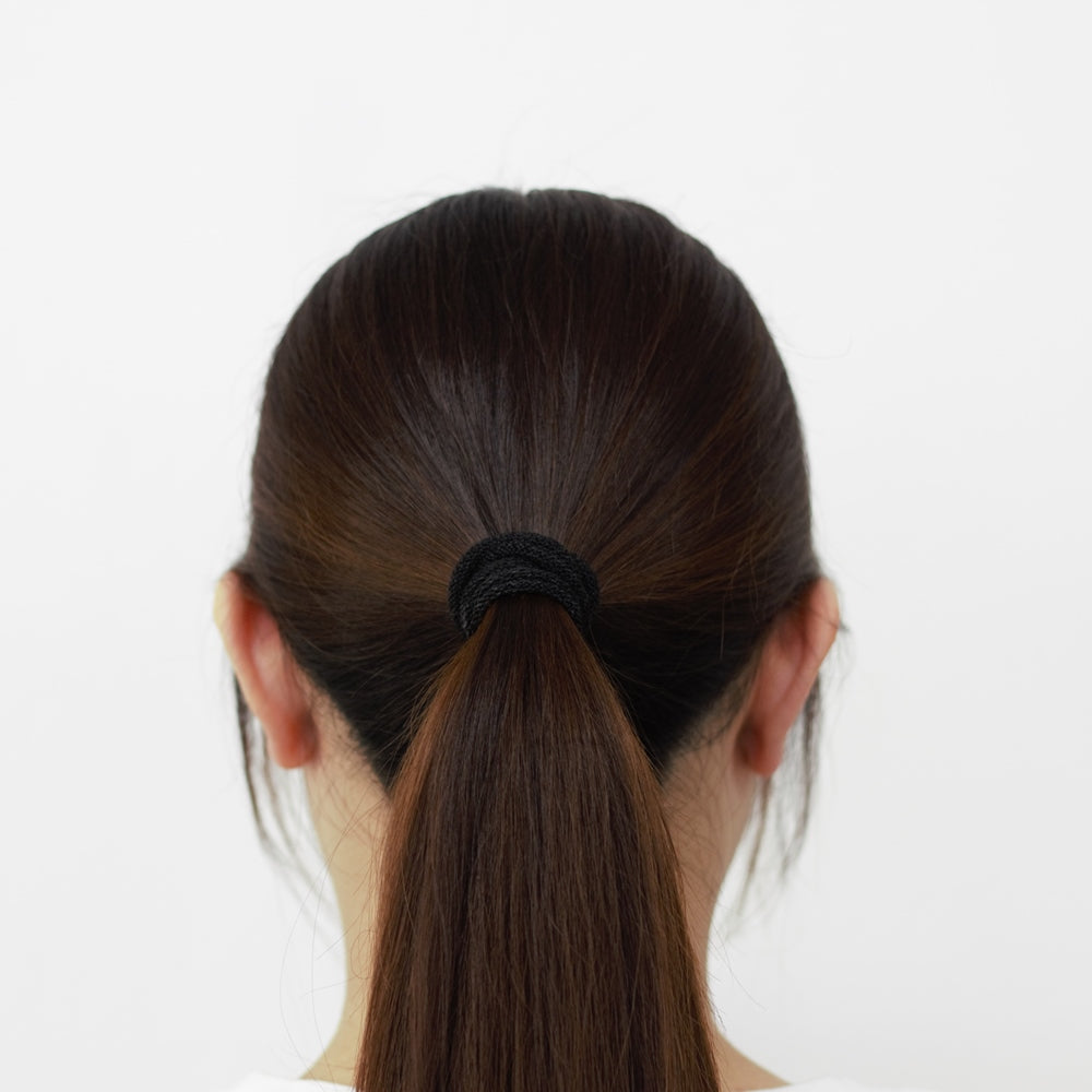 シルクとソルファイバーを掛け合わせた髪にやさしいヘアゴムです