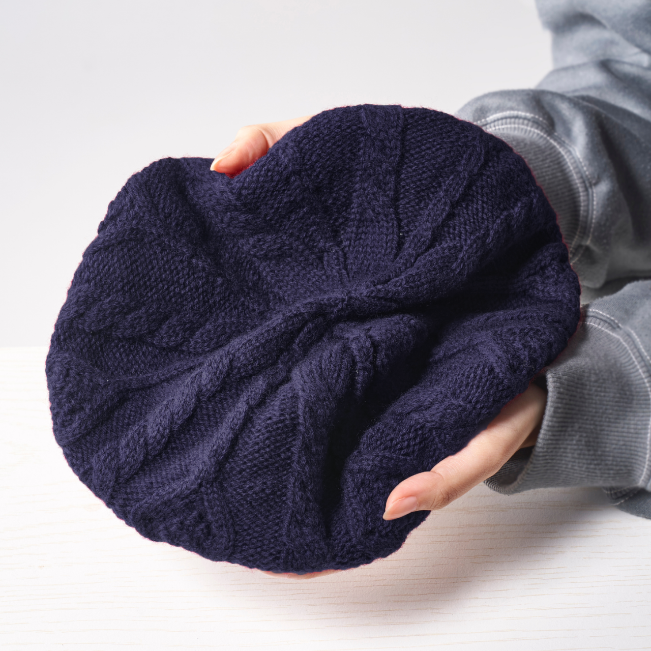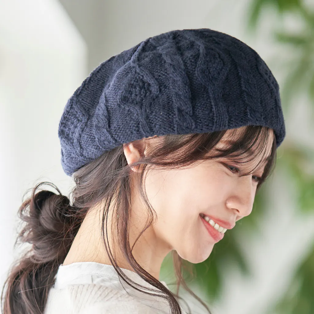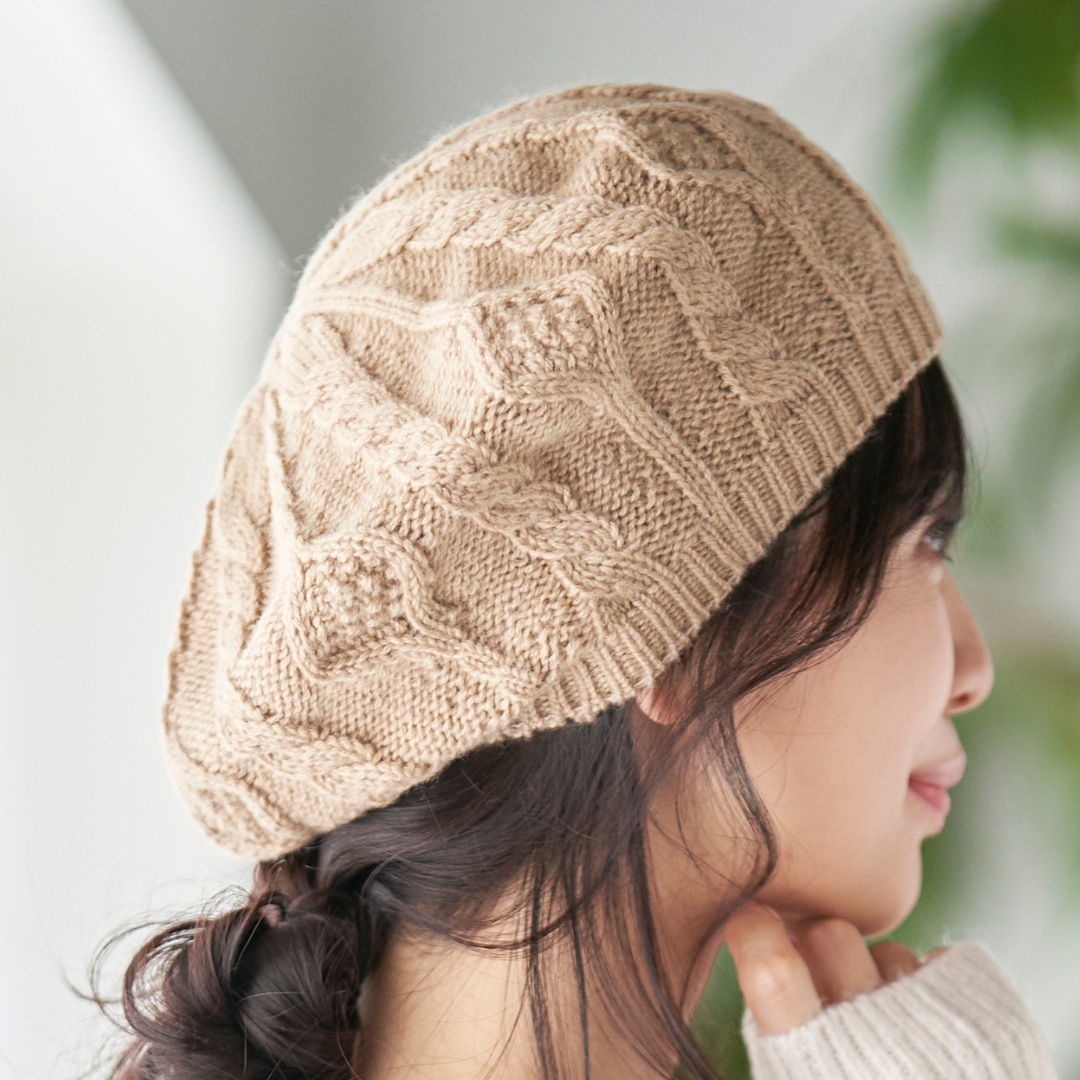 ベレー帽[まるで空気のように、軽くて温かいウール100%]ケーブル編み 縄編み