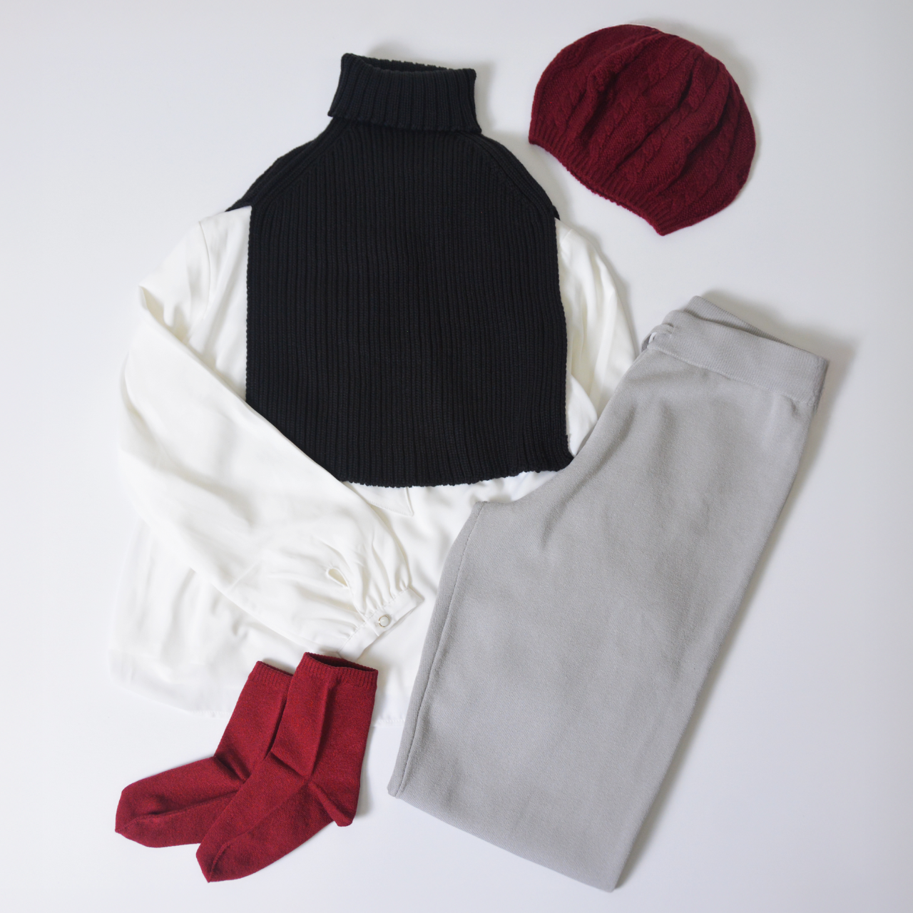 寒い季節にぴったりの上質なウールラムを100%使用したハイネックスヌードです